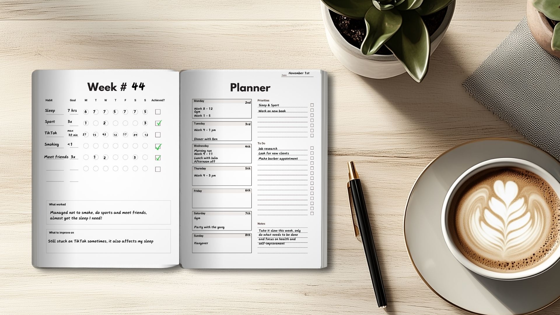 The Enactive 52 Week Tracker is your scaffold for a year of intentional living and personal growth. It’s designed to help you structure your thoughts, reflect on your progress, and transform your aspirations into reality.